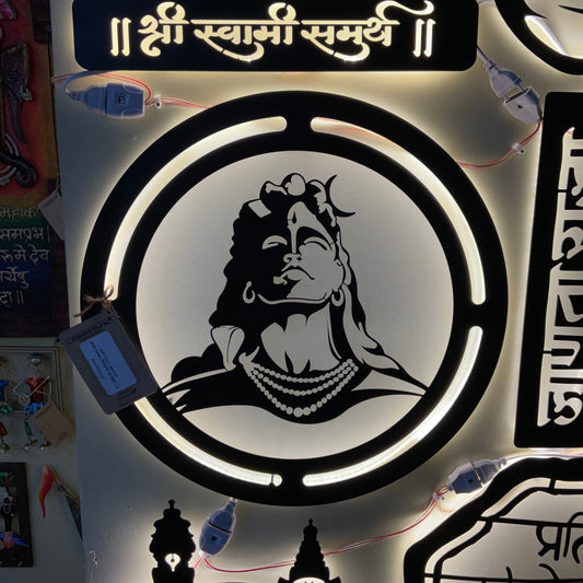 Adiyogi CNC Steel Wall Art Sculpture in Black Colour with LED Light