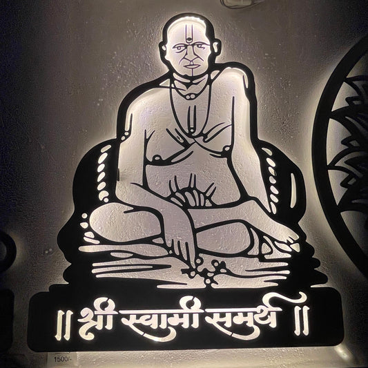 Swami Samarth Steel Wall Art Sculpture in Black with LED Light
