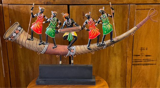 Handcrafted 05 Figures Adivasi Dance on Trumpet Steel Table Decor Sculpture