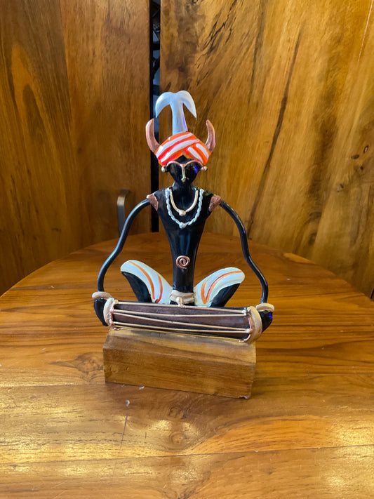 Handcrafted Adivasi Musician Steel Table Decor Sculpture