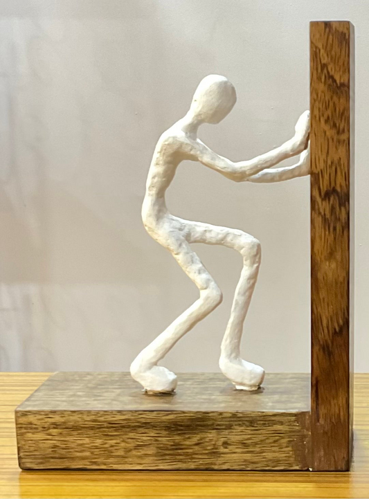 Handcrafted Wood Set of Men Pushing Frame Table Decor Sculpture