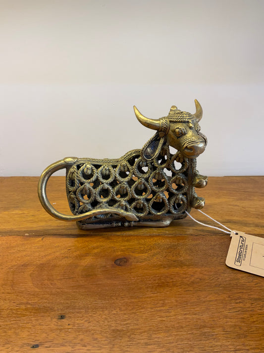 Handcrafted Brass Cow with Bells Table Decor Sculpture