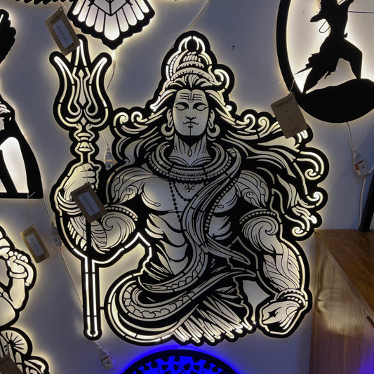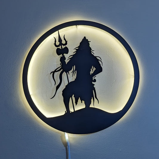 Lord Shiva Steel Wall Art Sculpture in Black with LED Light