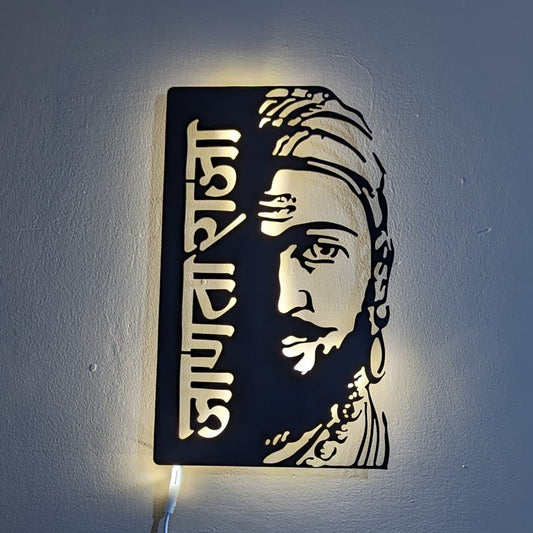 Chhatrapati Shivaji Maharaj Suvarna SinhaSan Steel Wall Art Sculpture in Black with LED Light
