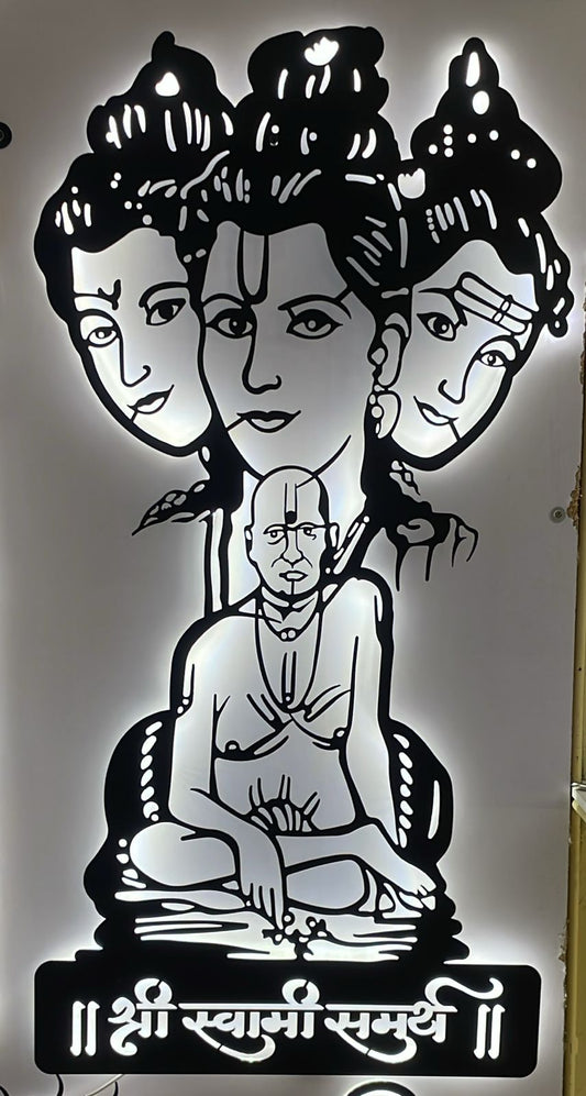 Datta Swami Samarth CNC Steel Wall Art Sculpture in Black with LED Light