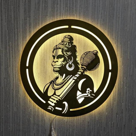 Jai Hanuman Steel Wall Art Sculpture in Black with LED Light