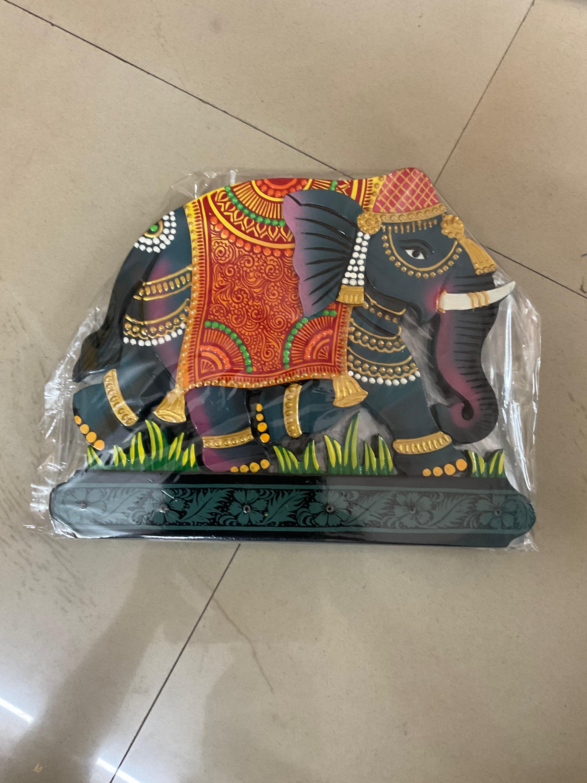New Elephant Key Holder Wooden Handcrafted Wall Art Sculpture is a symbol of strength, wisdom, and prosperity, brought to life through traditional artistry. Hand-carved from premium quality wood, this masterpiece highlights intricate detailing and a refined polished finish, showcasing the skill of master artisans. Ideal for Living Rooms, Bedrooms, Dining Areas, Conference Rooms, or Office Cabins, this handcrafted wall art adds cultural richness and timeless elegance to any space.